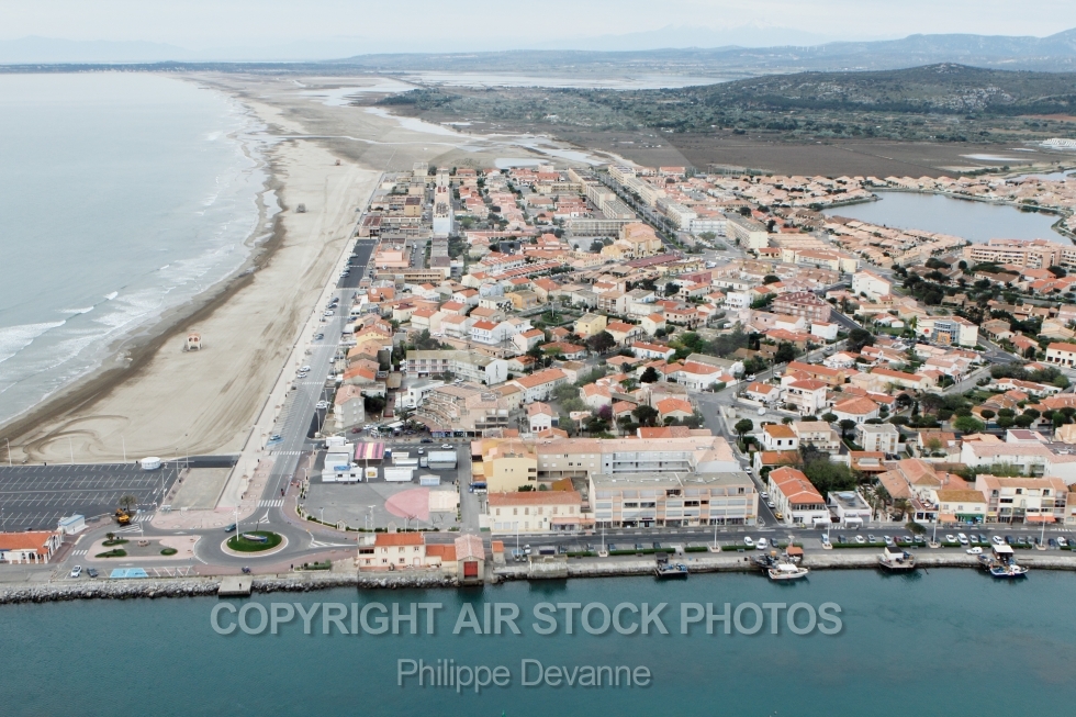 Description: vue aérienne de Port-la-Nouvelle 11210 et de l avenue de la mer , Aude, Languedoc-Roussillon, France