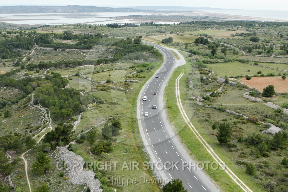 Route départementale D627 vue du ciel, Leucate 11370, Aude, Languedoc-Roussillon, France