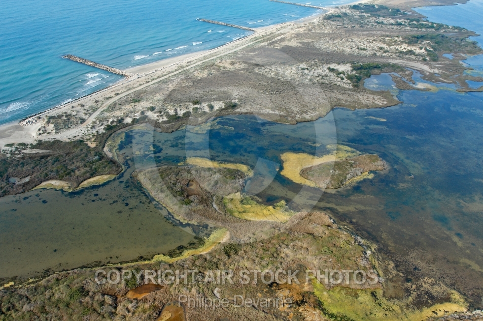 Photo aérienne des etangs de la petite camargue , Sainte Maries de la Mer en Camargue, 13096 Bouches du Rhone, P.A.C.A, Provence-ALpes-Côte d Azur, France, Europe