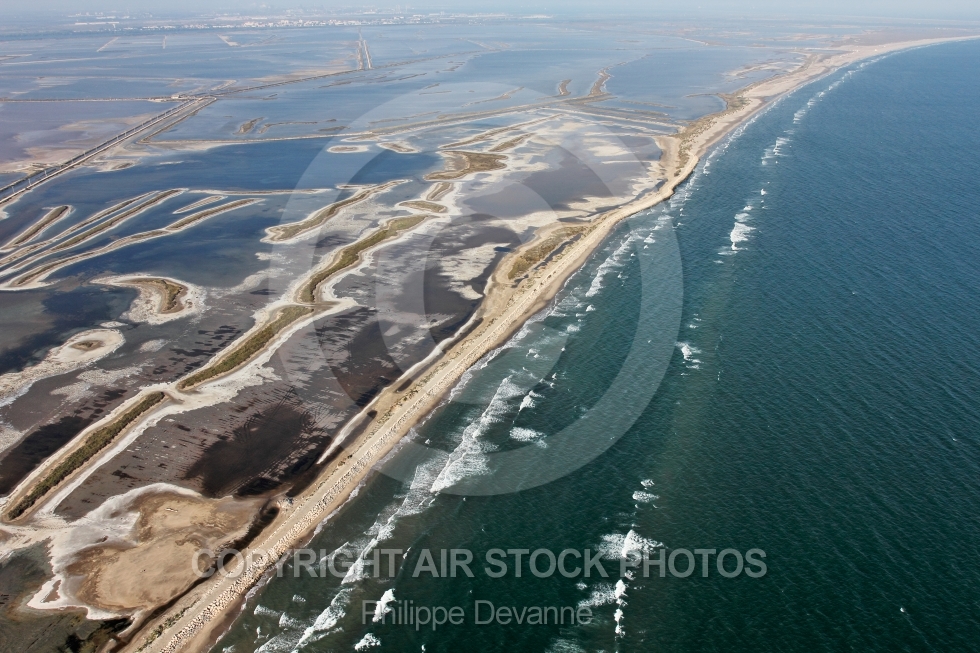 photo aerienne étang camargue arles salin salins de giraud bouches du rhone salines marais salants sel côte plage rhone paca marais photo aérienne mer provence aérien paysage méditerranée provence-alpes-côte d'azur vue d'en haut vue du ciel 13 13129 plage d'arles plage de pièmanson