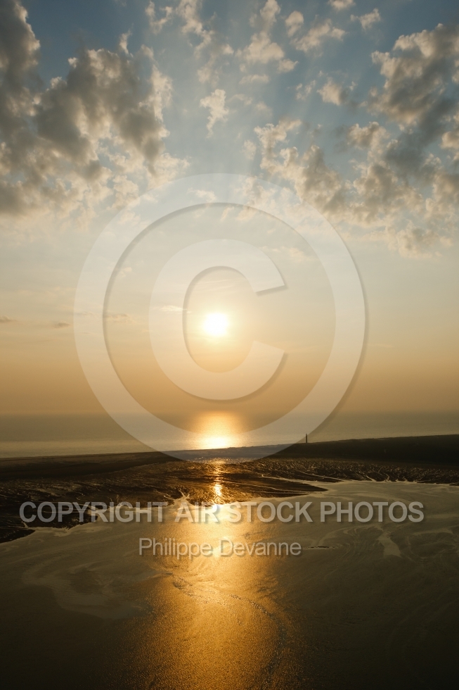 Description: Photo aérienne coucher de soleiol sur l Anse de la Palmyre, Les mathes La palmyre 17570, département de Charente-Maritime, Région Poitou-Charente, France