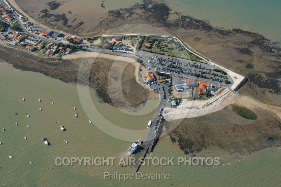 Description: vue aérienne de l embarcadère de la Pointe de la Fumée vers l île d Aix , Fouras, Charente-Maritime 17450