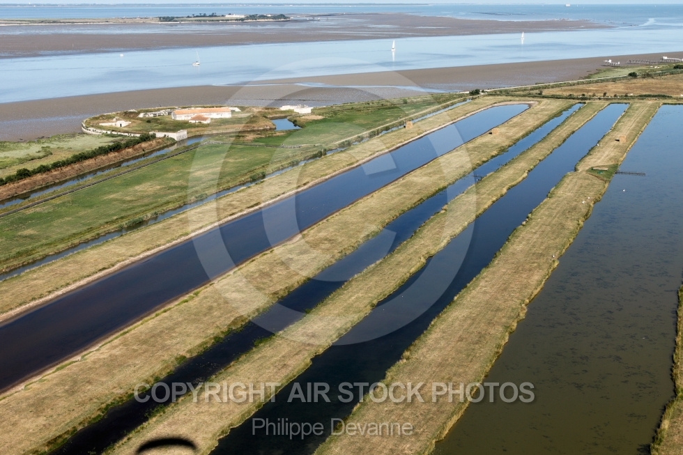 Description: Photographie aérienne du Fort de la Pointe dit Fort Vasoux et marais de la Cabane situé au Nord de l embouchure de la Charente sur la commune de Fouras 17450, département de la Charente-Maritime 17, Région Poitou-charentes, France, Europe