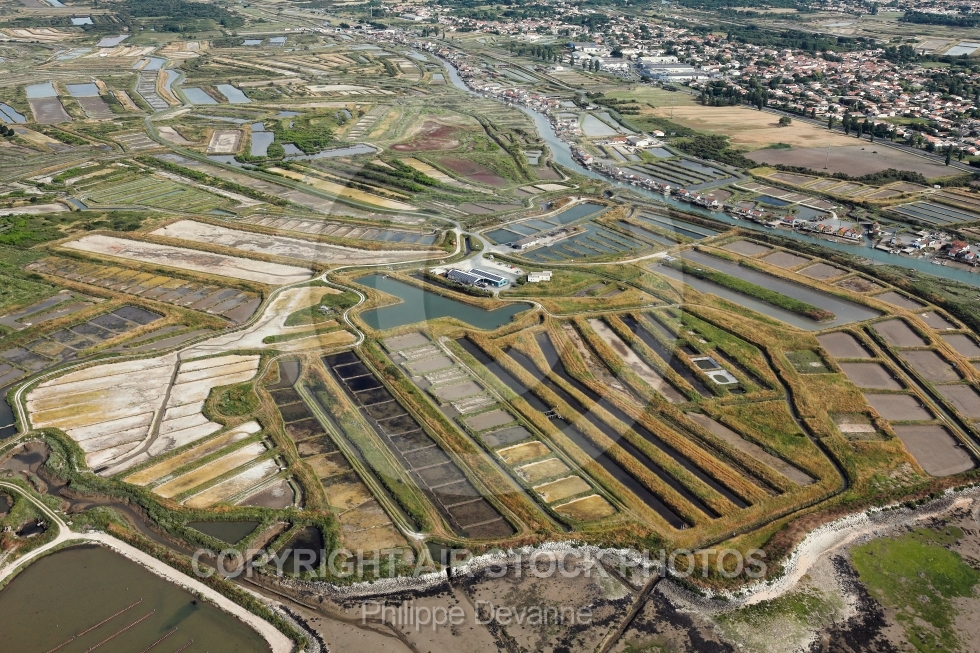 Photographie aérienne des Marais salants de lîle d Oléron sur la commune de Château-d Oléron 17370 , département de la Charente-Maritime région Aquitaine-Limousin-Poitou-Charente, France. Prise de vue du 25 juin 2015