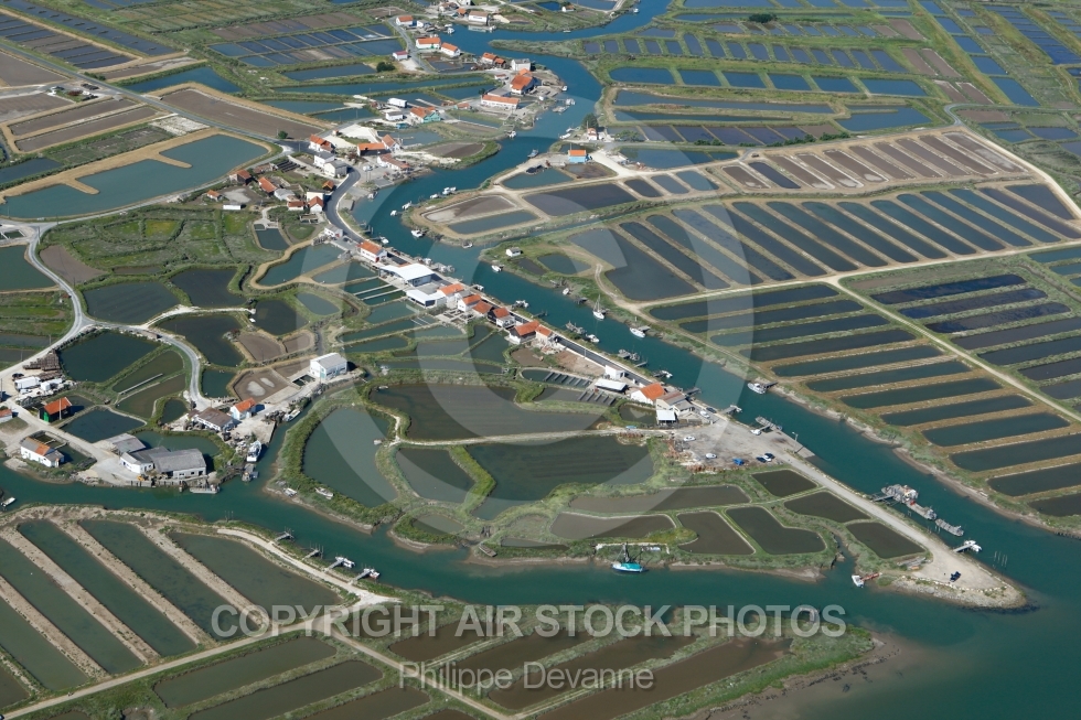 Vue du ciel du port ostréicole de La Grève à Duret, Arvert, Charente-Maritimes