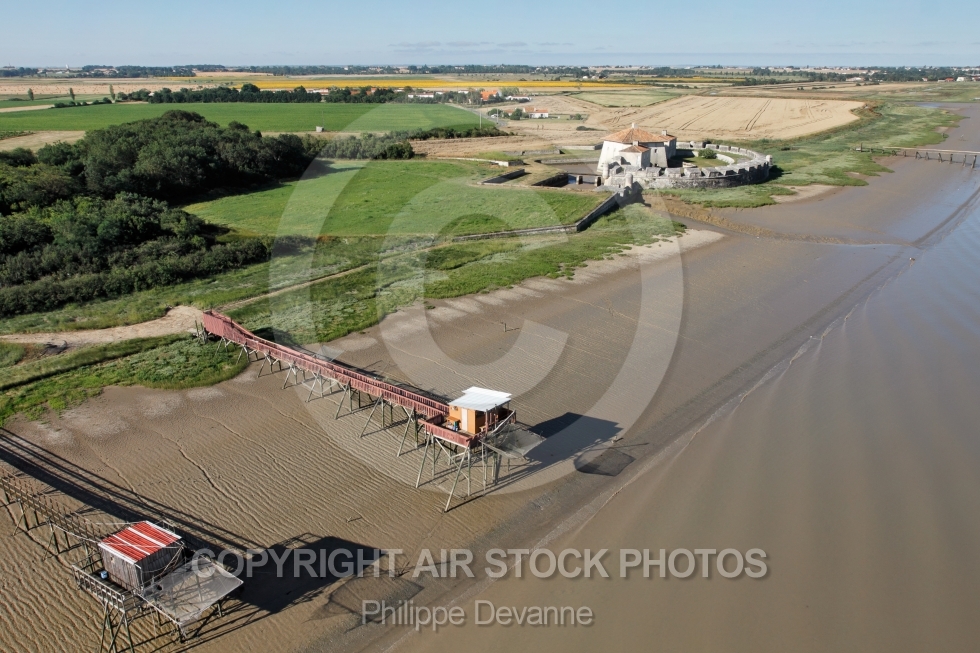 Vue aérienne de Fort Lupin et carrelet, situé entre Soubise et Saint-Nazaire-sur-Charente 17780, département de la Charente-Maritime 17, Région Poitou-charentes, France, Europe