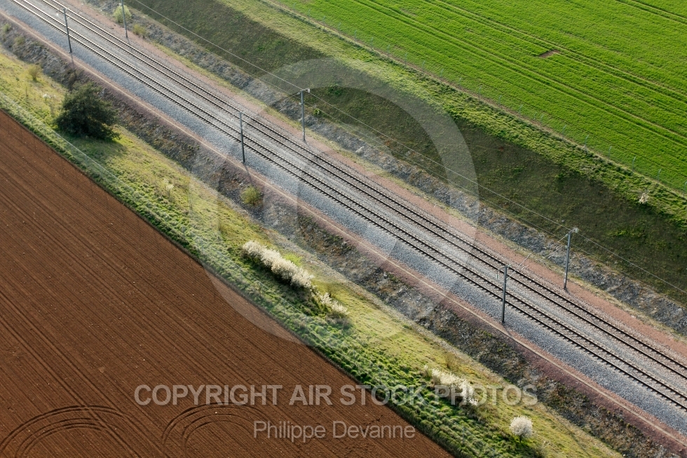 Description: vue aérienne du chemin de fer dans les champs et cultures de la beauce 28