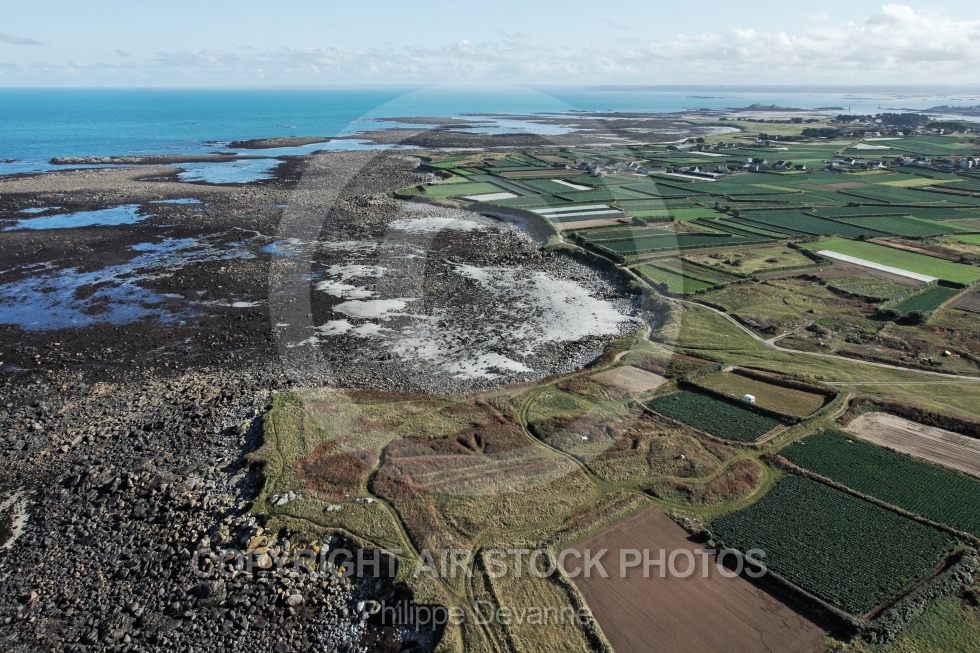 Vue aérienne de l île de Batz 29253 à Marré basse le 25 octobre 2011, région Bretagne, arrondissement de Morlaix, Communauté de communes du Pays Léonard, France , Europe
