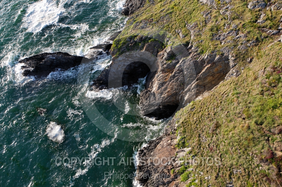 Photo aérienne des falaises de la Pointe de Trefeuntec, situé a mi chemin de Beg ar Véchen, commune de Plonévez-Porzay 29550 département du Finistère 29, La Bretagne vue du ciel, France Ouest, Europe