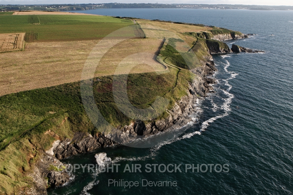Description: Photo aérienne des falaises de la Pointe de Trefeuntec et Beg an Ty Garde, commune de Plonévez-Porzay 29550 département du Finistère 29, La Bretagne vue du ciel, France Ouest, Europe