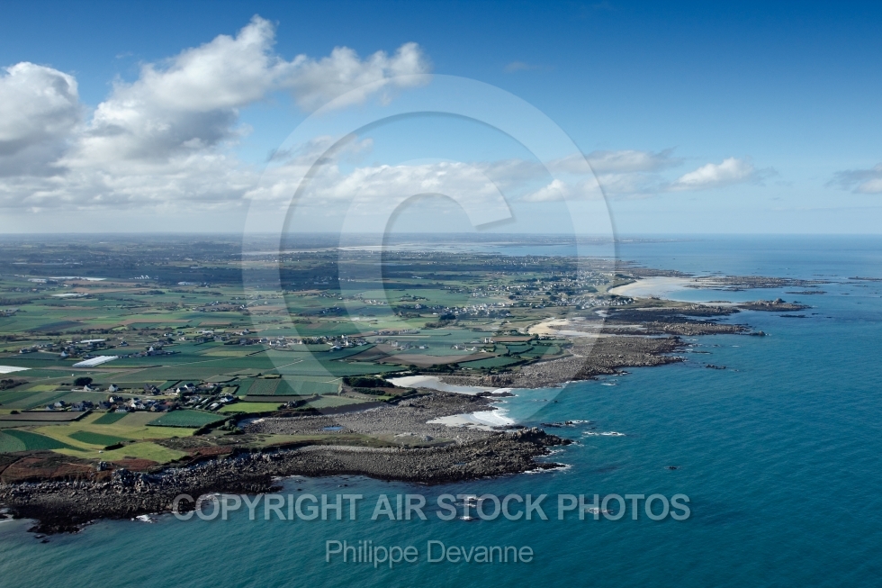 Vue aérienne du littoral de Ceder, côtes du Finistère 29233, région Bretagne, arrondissement de Morlaix, Communauté de communes du Pays Léonard, France , Europe