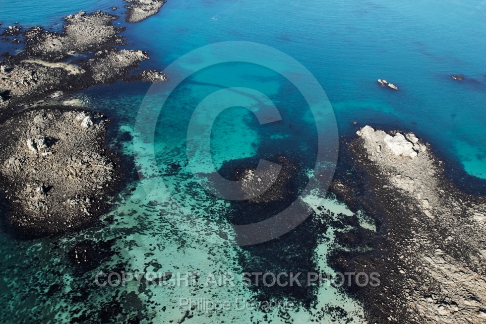 Description: Vue aérienne du littoral de Santec , côtes du Finistère 29250, région Bretagne, arrondissement de Morlaix, Communauté de communes du Pays Léonard, France , Europe