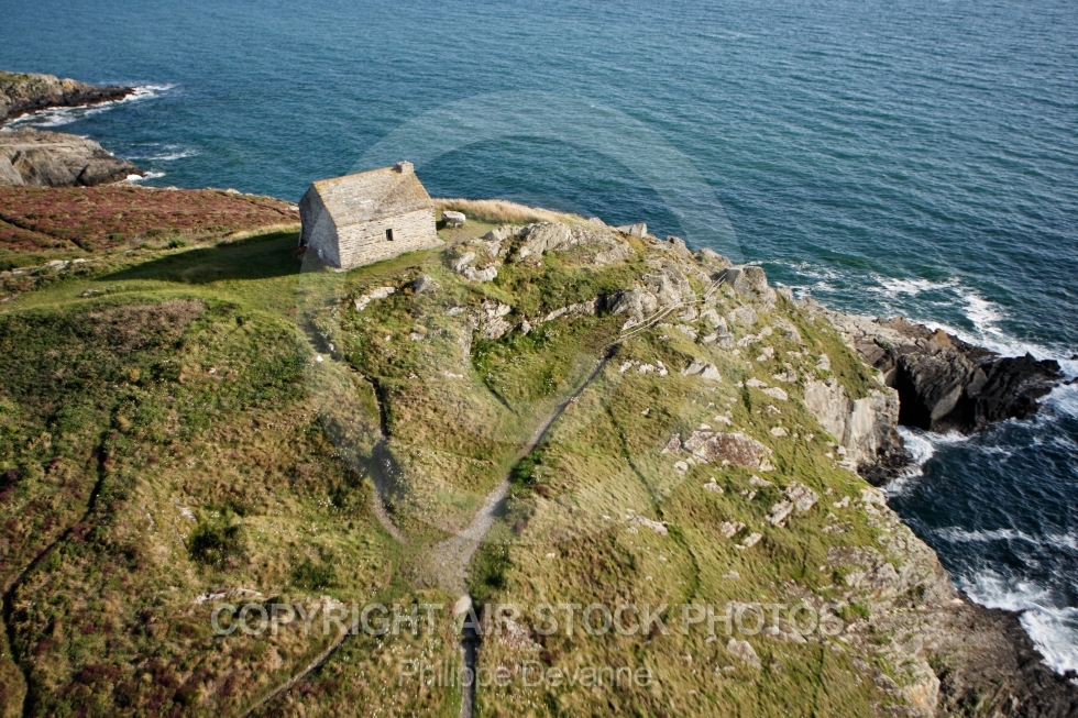 Description: Photo aérienne de la Pointe et falaises de Tal ar Grip Pors Ar Varg, au sud de la plage de Pentrez et Lestrevet, commune de Plomodiern 29550 département du Finistère 29, La Bretagne vue du ciel, France Ouest, Europe