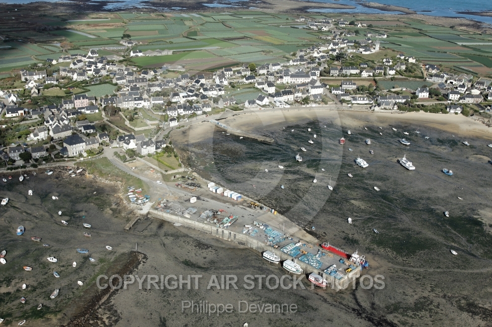 Description: Vue aérienne du port de pêche de l île de Batz 29253 à Marré basse le 25 octobre 2011, région Bretagne, arrondissement de Morlaix, Communauté de communes du Pays Léonard, France , Europe
