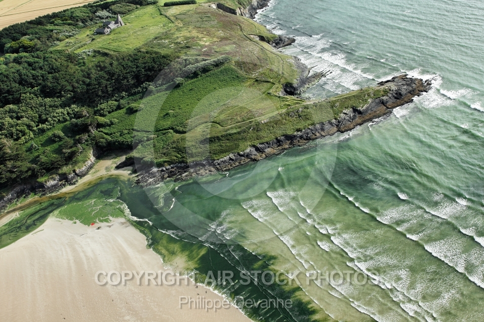 Photo aérienne de Trefeuntec Beg an Ty Garde vue de la plage de Sainte-Anne la Palud, commune de Plonévez-Porzay, département du Finistère 29, La Bretagne vue du ciel, France Ouest, Europe