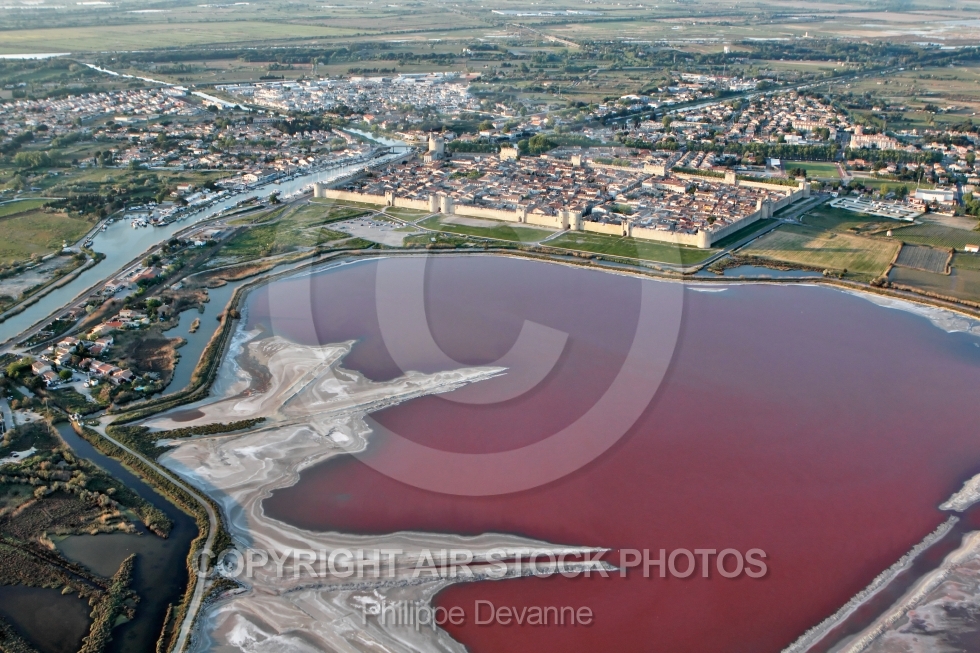 Photo aérienne d Aigues-Mortes 30220, département du Gard, Région Lanquedoc-Roussillon, Camargue, sud de la France