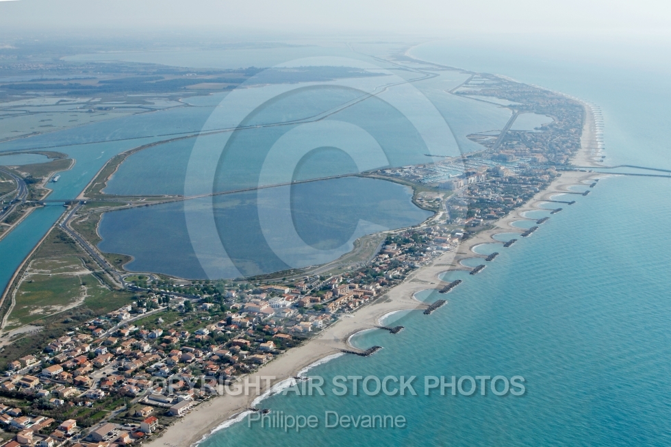 Description: photograhie aérienne de l étang d Ingril et du canal du Rhône à sète, Frontignan 34110 , Hérault 34, Languedoc-Roussillon, France