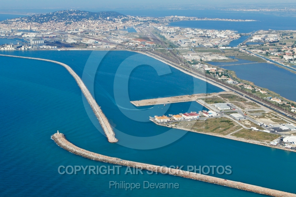 photo aérienne sète port digues mer côte hérault languedoc-roussillon méditerranée sud 34 34200 frontignan photographie aérienne aérien vu du ciel vue du ciel languedoc france europearray