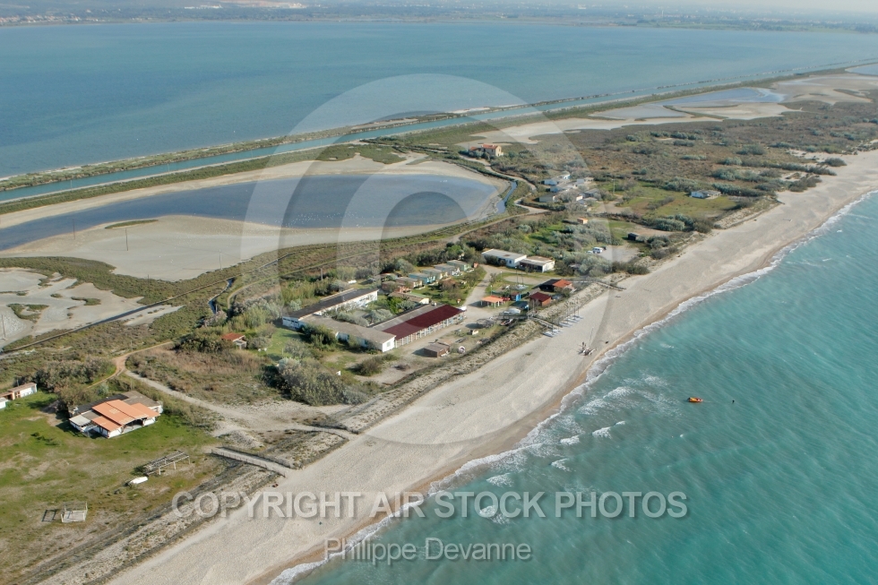photograhie aérienne de la plage des aresquiers, entre Vic la Gardioles et Montpellier, Frontignan 34110 , Hérault 34, Languedoc-Roussillon, France