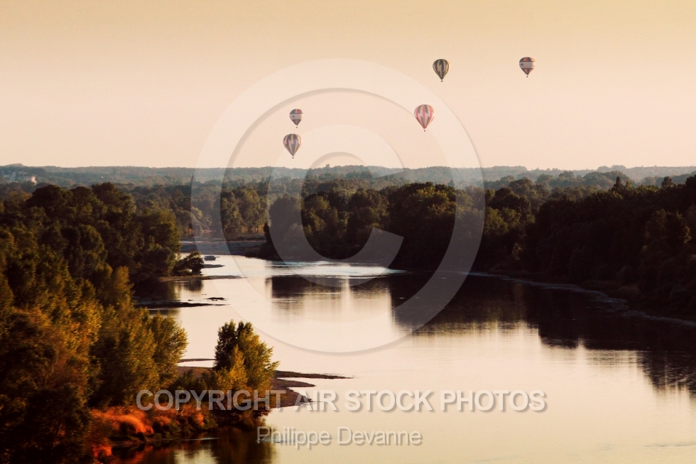 photo aérienne montgolfières La loire Loire fleuve Mosne 37 37530 Indre-et-Loire centre France aérien vue du ciel vu d'en haut