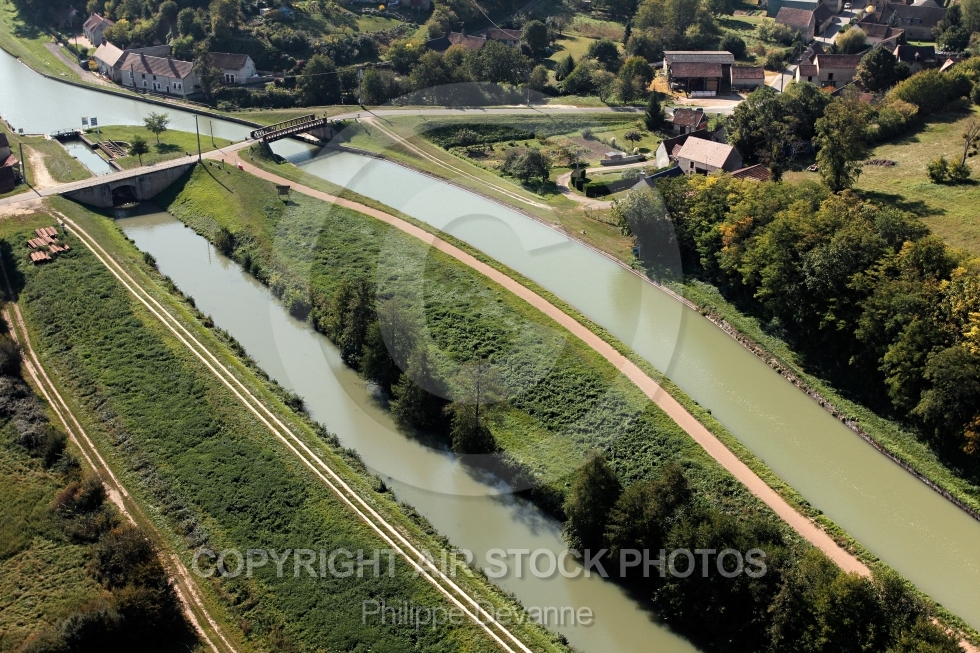 Description: Photo aérienne de l ecluse de l Etang, Beaulieu-sur-Loire 45 , canal latéral à la Loire au niveau de Beaulieu-sur-Loire 45630 département du Loiret région Centre France
