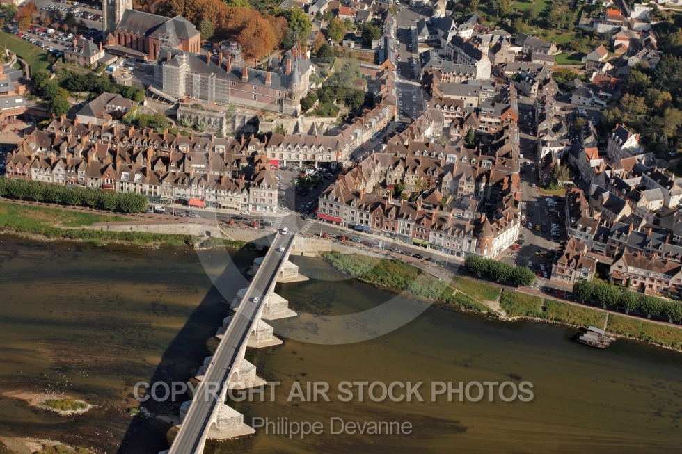 Photo aérienne du pont et château de Gien 45500 Loiret région Centre, France