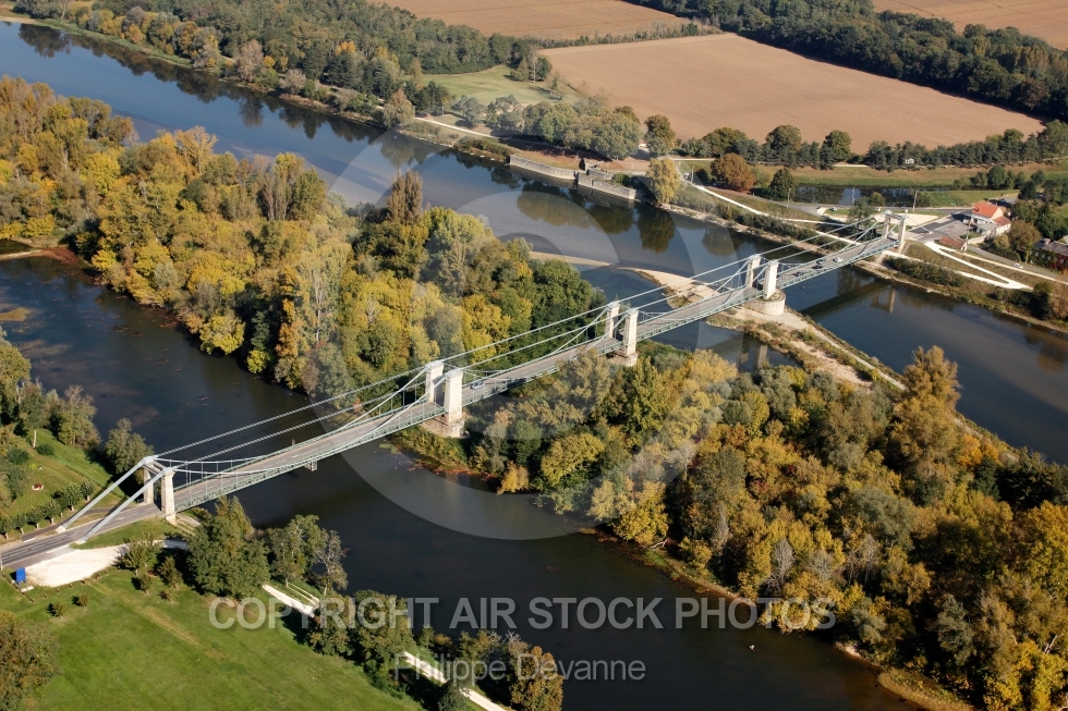 Description: Photo aérienne du pont suspendu de Chatillon-sur-Loire 45360 Département du Loiret, région Centre, France- situé à 5 km de Birare et 80 km d Orléans