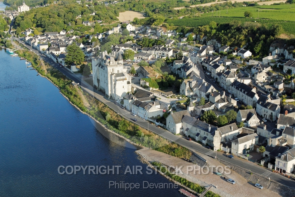 Description: château de Montsoreau sur Loire vue du ciel, 49730, Maine-et-Loire, région Pays de la Loire, France