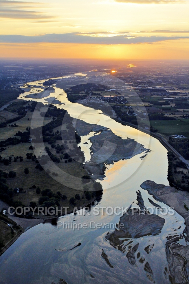 Description: La Loire vu du ciel , couché de soleil sur le fleuve