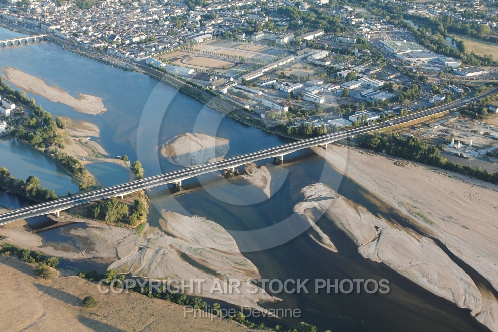 Description: Photo aérienne du pont du cadre noir sur la Loire à Saumur 49400, Maine-et-Loire, région Pays de la Loire, France