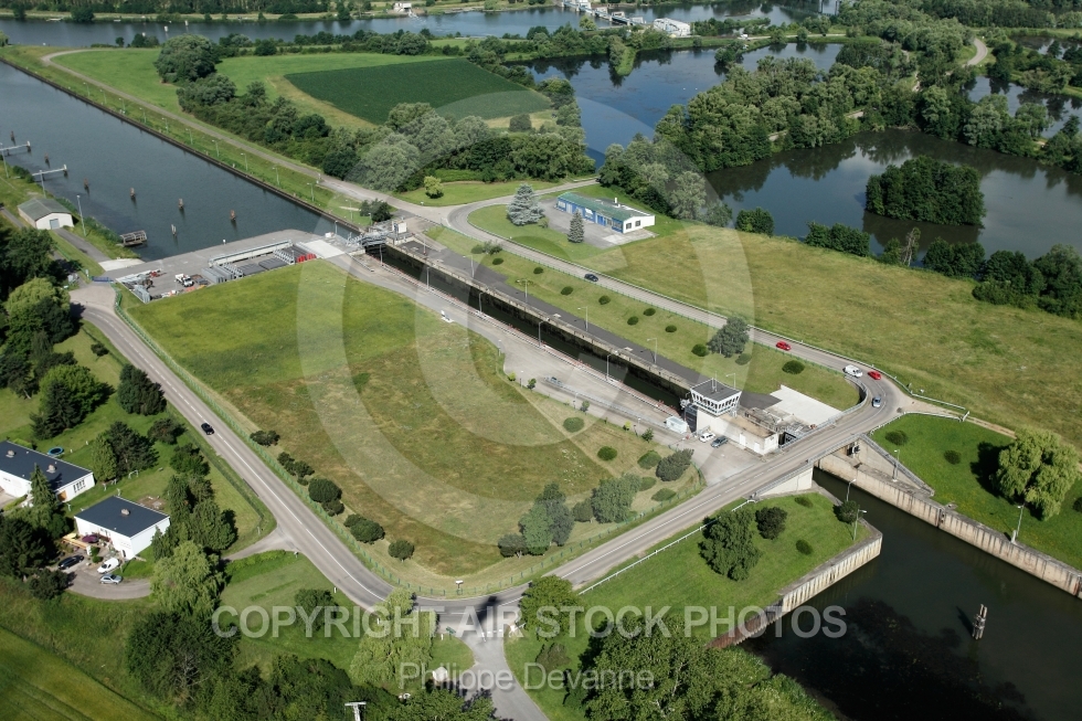 ecluse fleuve Kœnigsmacker photo aerienne aérien moselle 57 lorraine Thionville paysage est vue du ciel vue d'en haut vue d'avion vue oblique photos aériennes aérienne ULM paramoteur France 57970