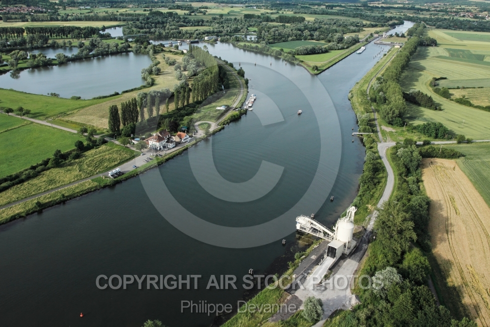 ecluse fleuve kœnigsmacker photo aerienne aérien moselle 57 lorraine thionville paysage est vue du ciel vue d'en haut vue d'avion vue oblique photos aériennes aérienne ulm paramoteur france 57970