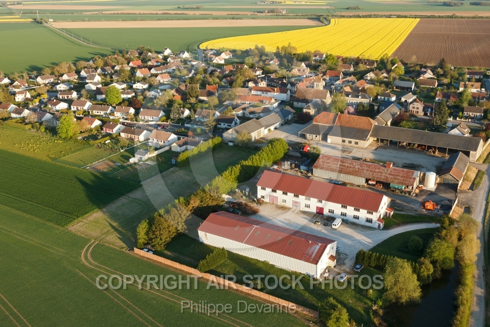 Description: Photographie aérienne de Boinville-le-Gaillard 78660 et des champs de colza , situé dans le sud du département des Yvelines , région Île-de-France, France. Commune de la Beauce naturelle limitrophe de Ablis. Prise de vue 04052016