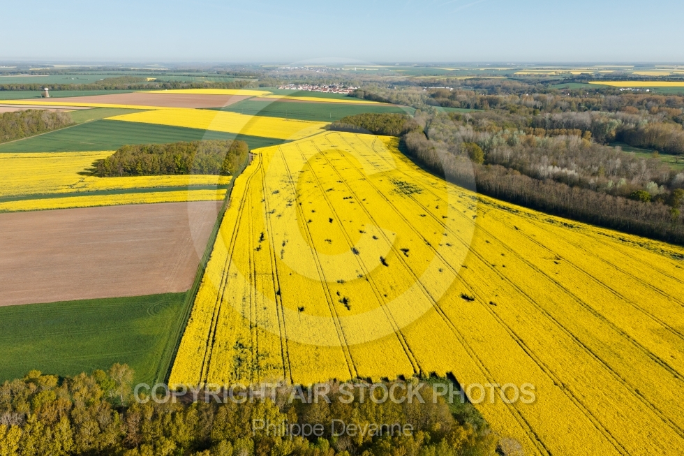 Description: Photographie aérienne des Champs de colza en Beauce , commune Le Gué-de-Longroi 28700, département d Eure-et-Loir en Région Centre-Val de Loire, France. Prise de vue du 04 mai 2015