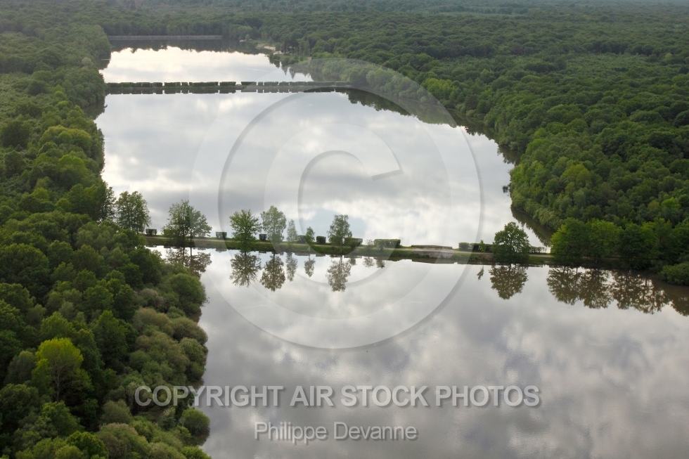 Photographie aérienne des étangs de Hollande, commune Les Bréviaires 78610, département des Yvelines , en région Île-de-France, France. Commune située à 4 km au nord de Rambouillet . Prise de vue paramoteur du