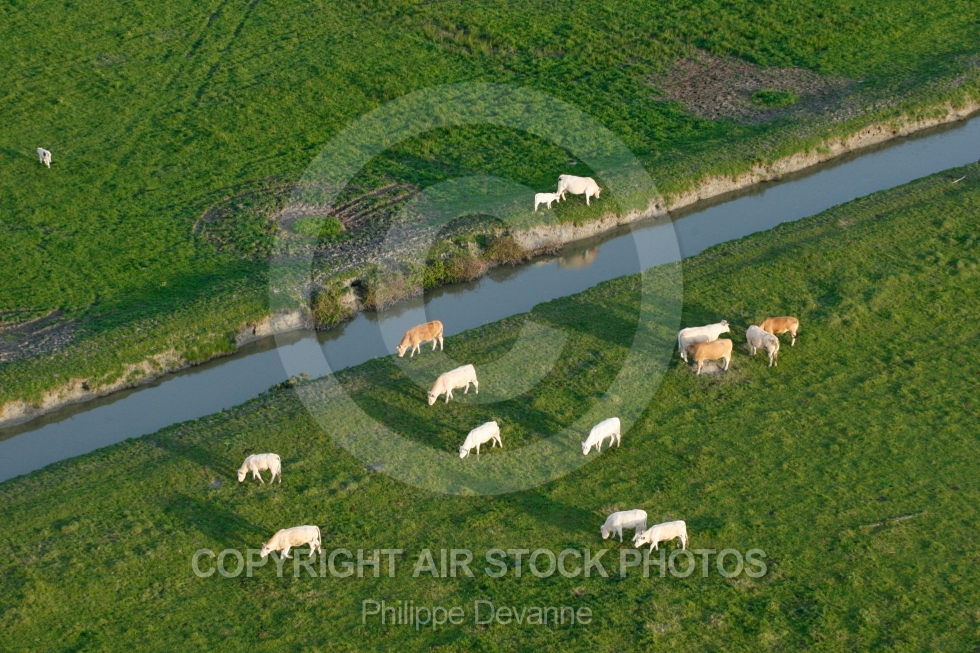 vue aerienne marais bocage élevage boeuf vache troupeaux humide vendée poitevin jard-sur-mer côte atlantique verdure vert paysage 85 vendée pays-de-loire 85440 talmont-saint-hilaire