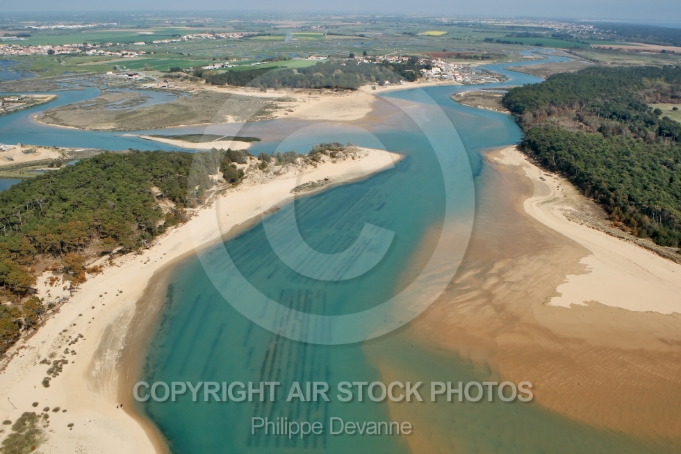 vue aérienne veillon plage anse estuaire payré rivière chenal littoral vendée vu du ciel survol ville côte plage atlantique aérien voyage France mer 85 Vendée Pays-de-Loire 85540