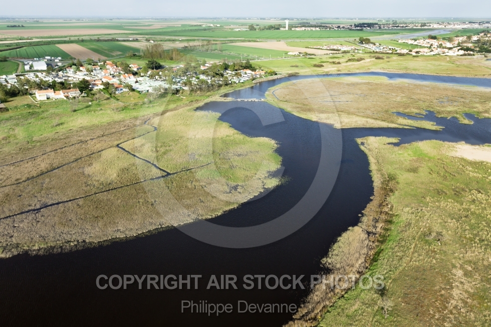 photo aérienne Camping Zagarella Longeville-sur-Mer aerien vendée côte litorral Atlantique Pays de la Loire 85 aérienne vue du ciel vue d'en haut vue d'avion vue aérienne paysage bord de mer Lagune 85 aérienne la belle Henriette la Casse La Faute-sur-Merde 85460