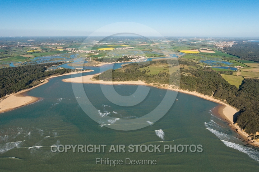 Photographie aérienne du Havre du Payre et de la plage du veillon , sur la commune de Jard-sur-Mer 85520 et Talmont-Saint-Hilaire 85440 , département de la Vendée région Pays de la Loire, France. Prise de vue