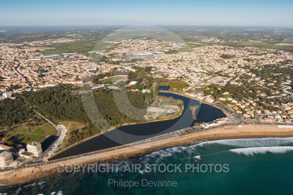 lac etang Les Sables d'Olonne vue du ciel littoral mer côte Atlantique océan Vendée Pays de la Loire photo aérienne aérien vue d'en haut photographie 85 85100