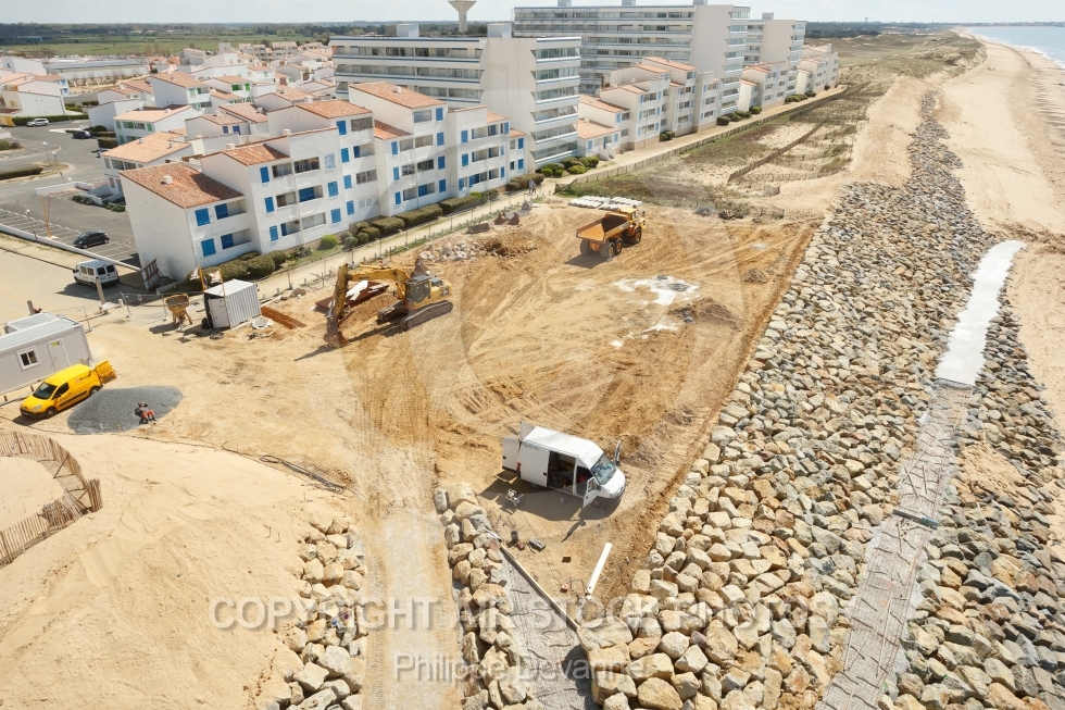 plage Les marines plage des Mouettes digue reconstruction travaux Saint-Hilaire-de-Riez vue du ciel littoral mer côte Atlantique océan Vendée Pays de la Loire 85 85270 photo aérienne aérien vue d'en haut