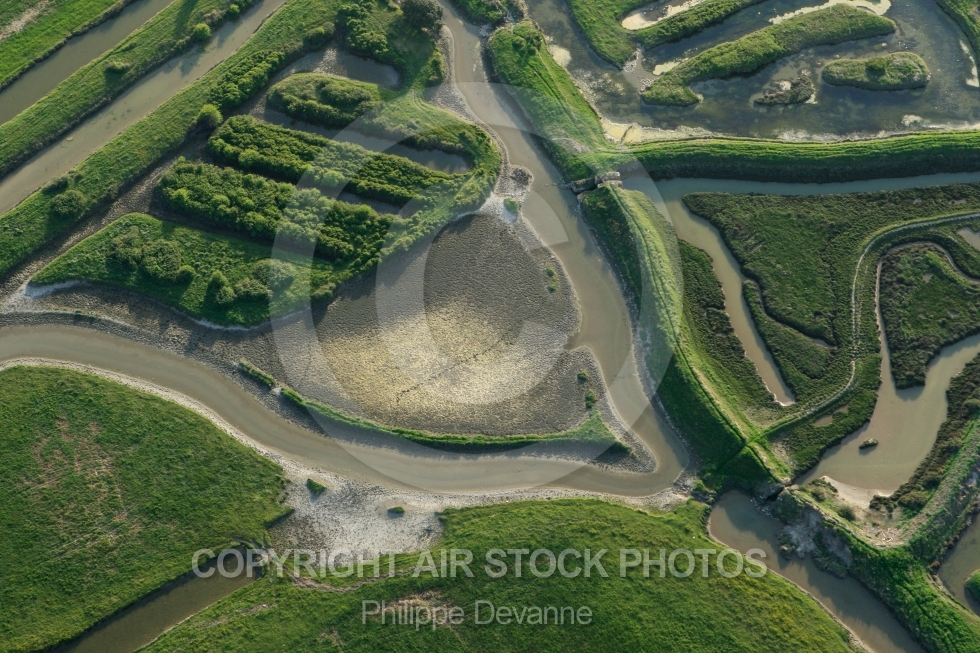 Vue aérienne du marais du Payré et du Veillon, Vendée 85