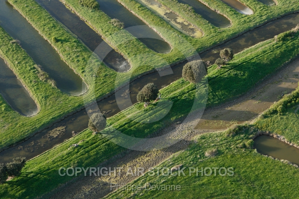 Vue aérienne du marais du Payré et du Veillon, Vendée 85