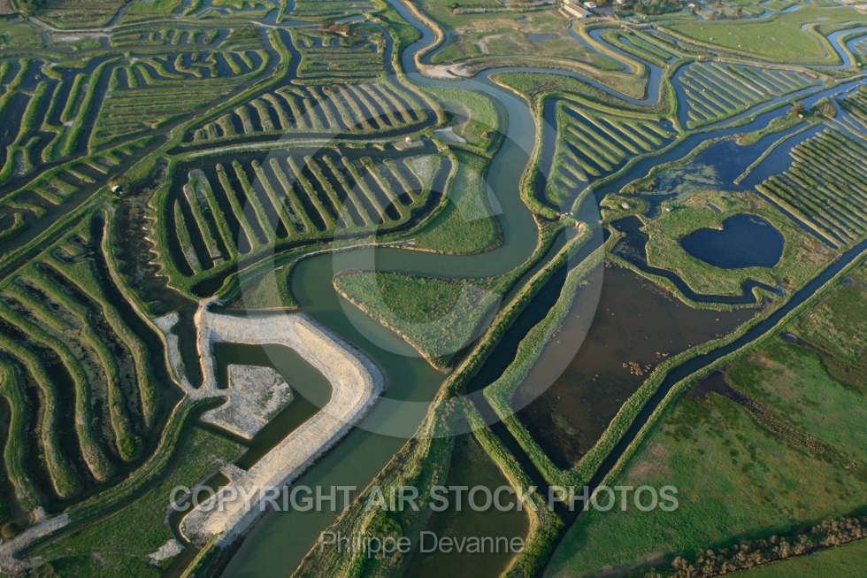 Description: Vue aérienne du marais du Payré et du Veillon, Vendée 85