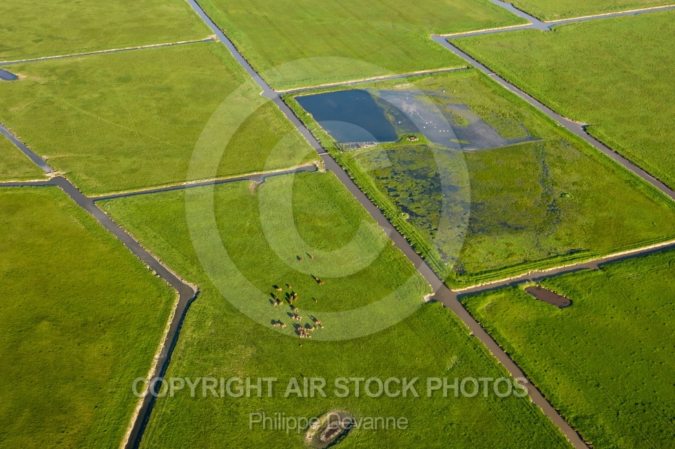 Marais Poitevin campagne bocage vue du ciel Vendée parc naturel reserves Pays de la Loire 85 Angles Grues St-Michel-en-l'Herm photo aérienne aérien vue d'en haut photographie Atlantique côte litorral