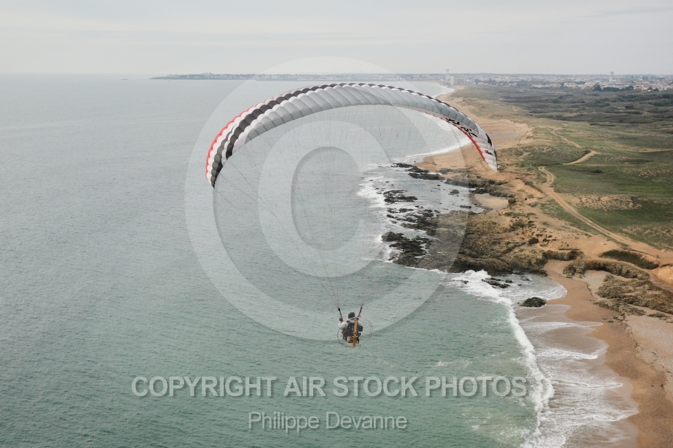 paramoteur parapente sport corniche Bretignolles-sur-Mer vue du ciel littoral mer côte Atlantique océan Vendée Pays de la Loire 85 85470 photo aérienne aérien vue d'en haut
