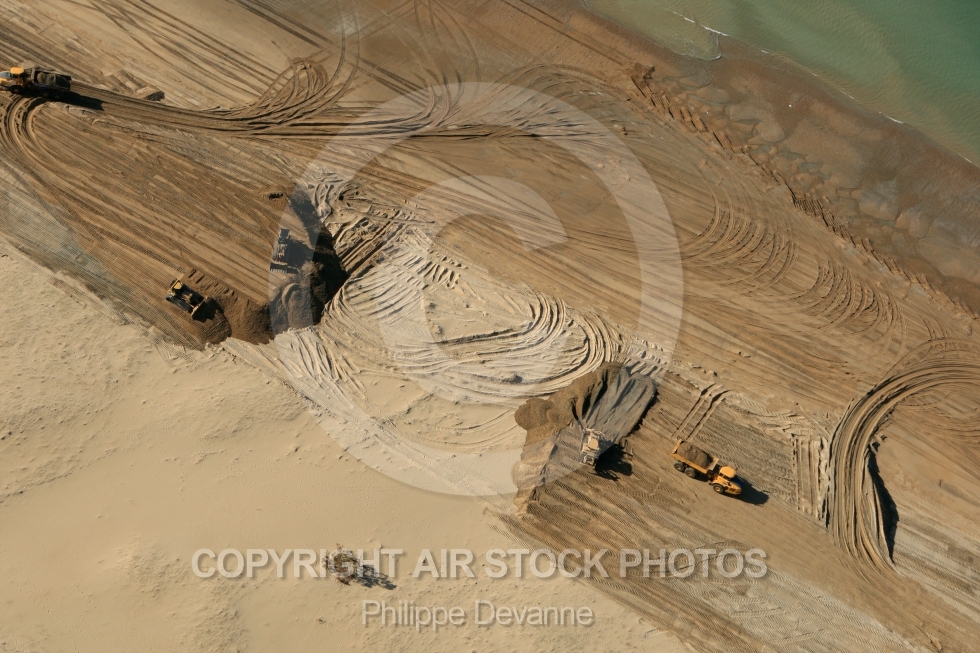 Vue aérienne - reconstruction des dunes de la pointe d Arçay, pointe de l aiguillon suite à la catastrophe naturelle de la tempête Xynthia du 27 et 28 fevrier 2010 , Vendée 85