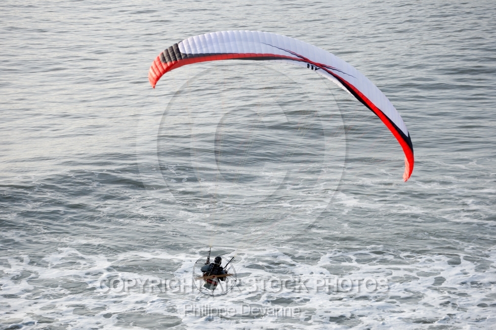 ULM paramoteur volant au dessu de la mer , Vendée 85