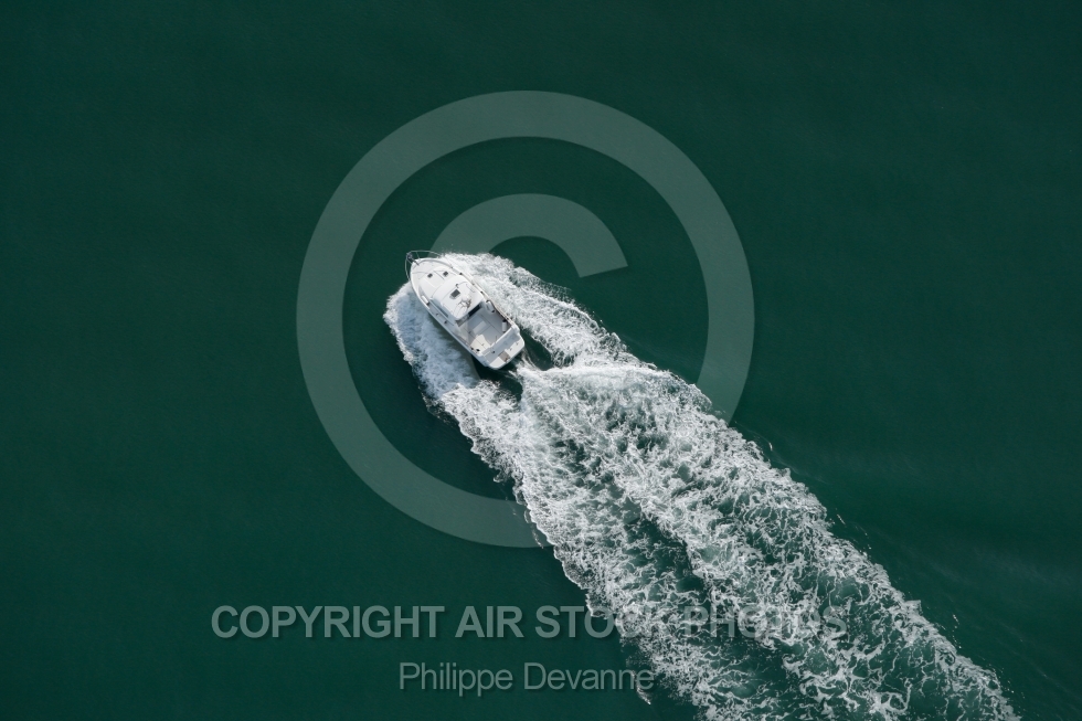 Description: Yatch en pleine vitesse vu du ciel