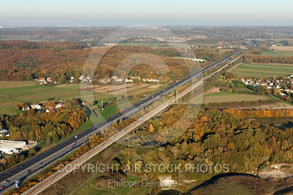 Description: Photo aérienne de l autoroute A10 au niveau de Forges-les-Bains 91470 au coeur de l Hurepoix , département de l Essonne, région Île-de-France.